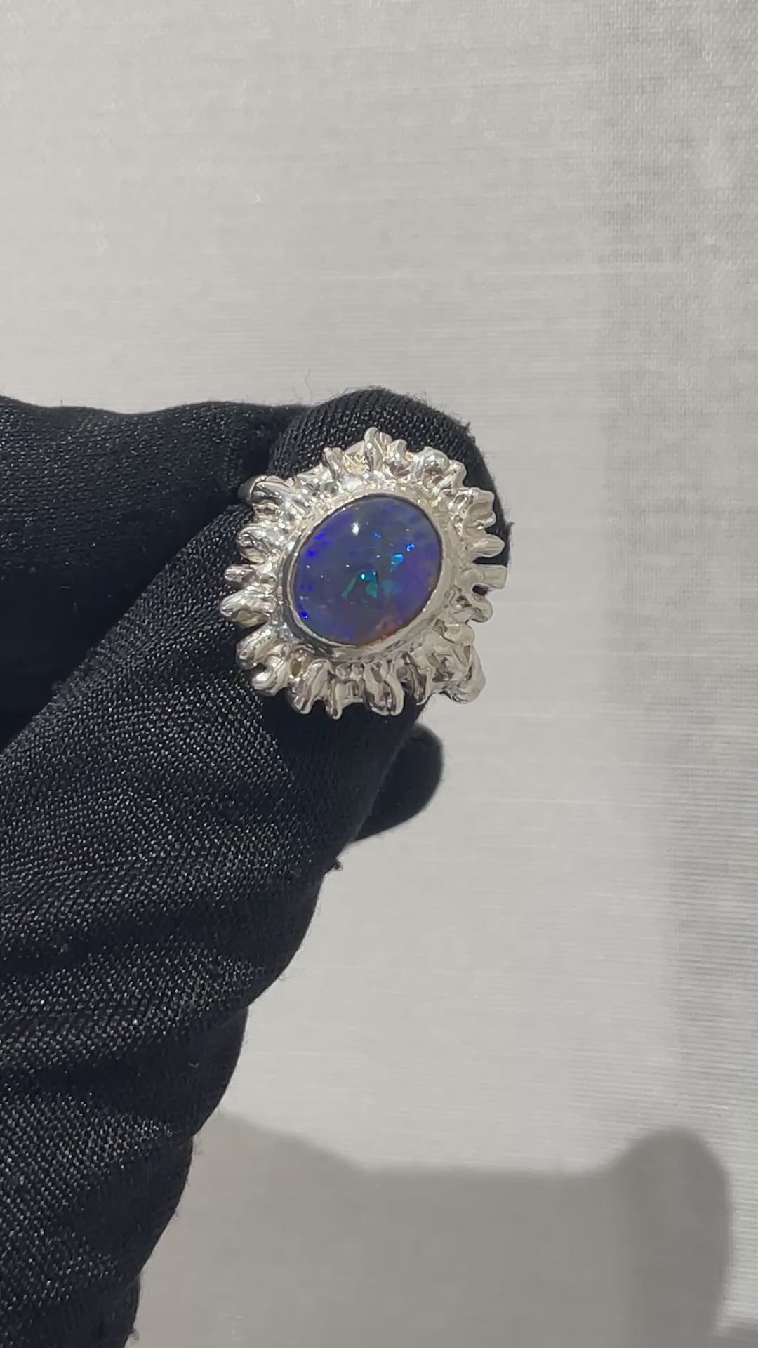放射状に広がるシルバーが、オパールを鋭く縁取ります。